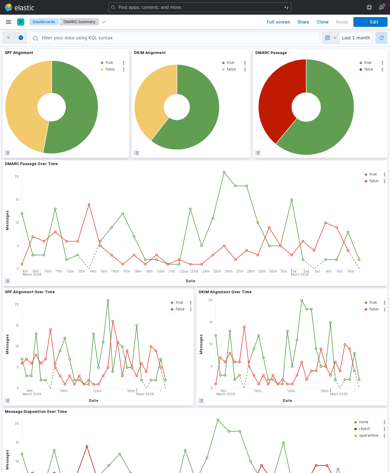 If you don’t want to self-host the full ELK stack, there are hosted options that parse your DMARC reports for free: